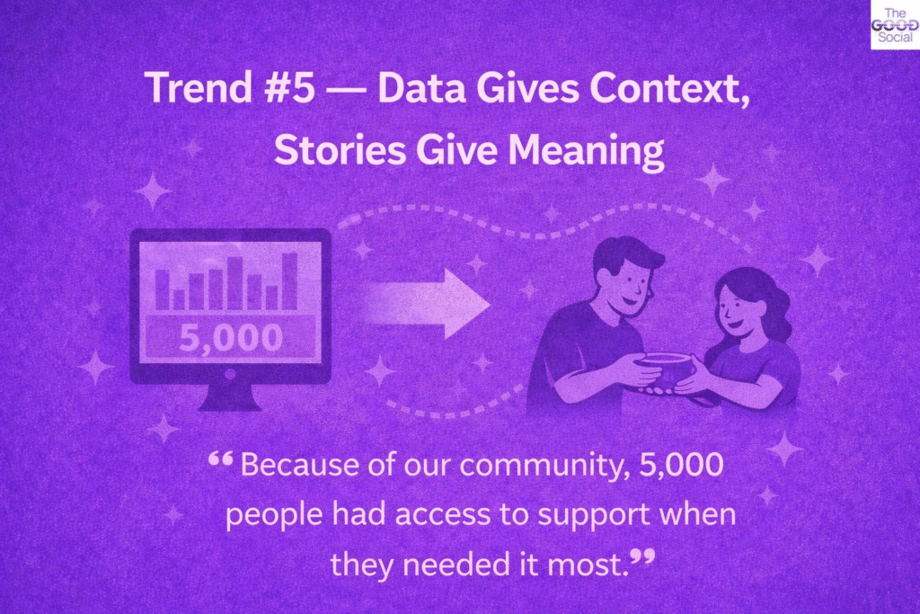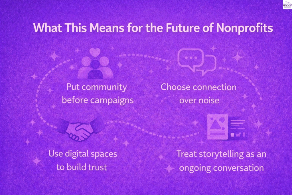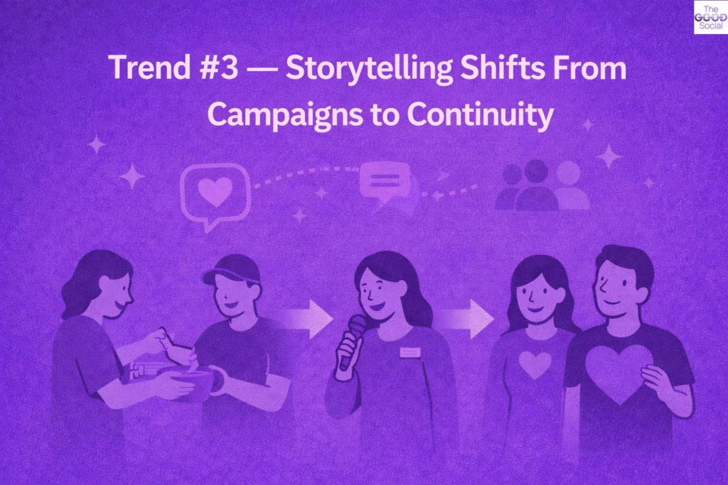 Nonprofits are moving away from one-off emotional appeals toward ongoing narrative building—where every post, comment, and interaction reinforces the mission.